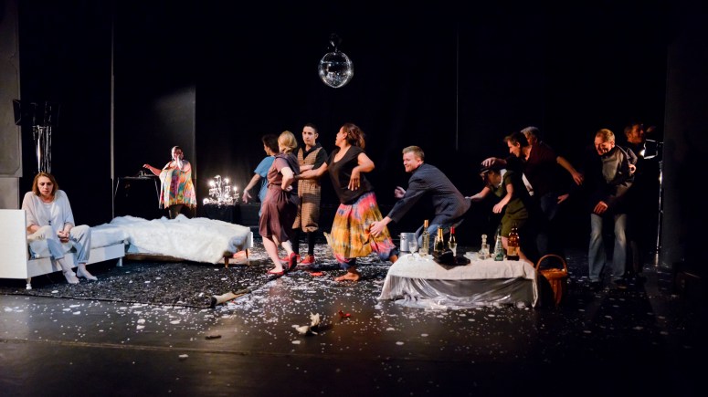 Valérie Antonijevich voit La Cerisaie comme une danse macabre ironique et cruelle où les personnages ont beau se réfugier à l’intérieur de la maison, dans la chambre des enfants, la tête dans l’oreiller, la réalité vient frapper à la porte, se rappeler à eux et les jeter dans le vaste monde.