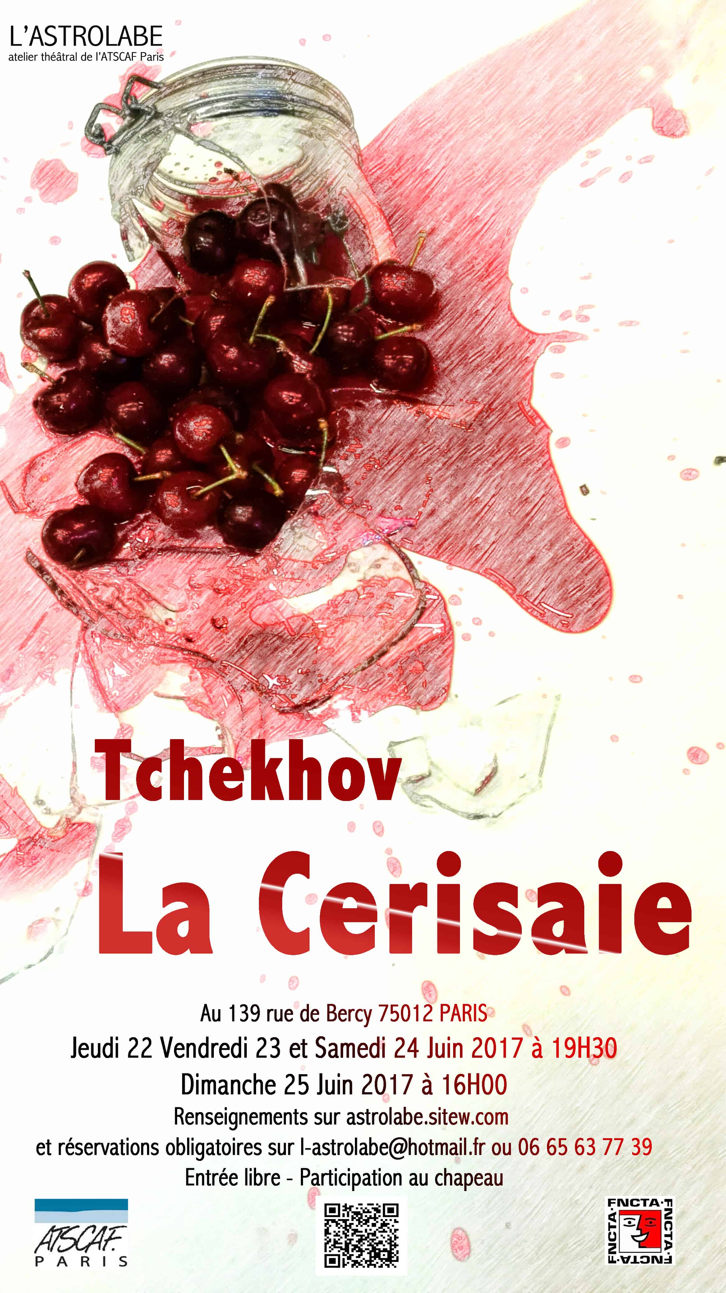 A la suite de la mort de son petit garçon, Gricha, Lioubov Andreevna Ranevskaïa avait fui la cerisaie, la Russie et s’était réfugiée à Paris avec son amant. Après plusieurs années d’absence, la voilà de retour. Si sa fille Ania a fait le trajet jusqu’à Paris pour la ramener, c’est que la situation est grave. Ni Lioubov Andreevna ni son frère Léonid Andréïevitch Gaev n’ont pu gérer la cerisaie et ils croulent sous les dettes ; sans solutions, sans argent, la cerisaie va être vendue. C’est le printemps. Les cerisiers sont en fleurs. L’ancien moujik et maintenant riche marchand, Ermolaï Alexeïevitch Lopakhine attend Lioubov Andreevna avec impatience et anxiété. Il est quatre heures du matin, mais peu importe, il a une idée de génie et peut la sauver.